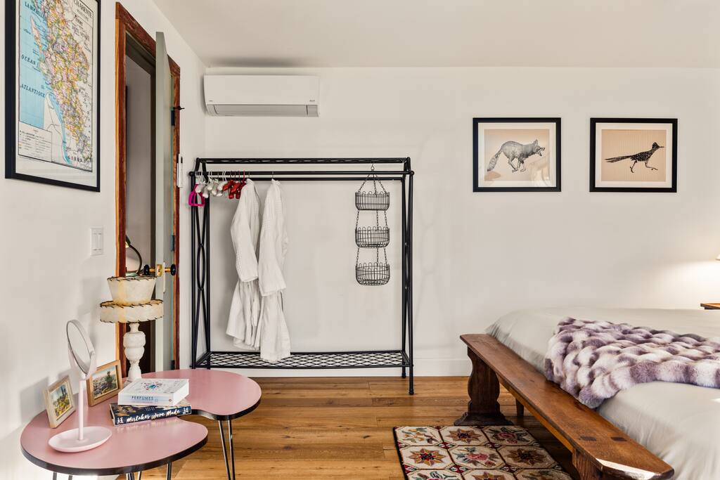 ☆☆ HIGHLIGHTS ☆☆ ✹ Designer property: recently redesigned by architect Duane Smith ✹ Total privacy in the heart of the desert: 2.5 private acres of solitude ✹ 3 spacious bedrooms: 2 kings + 1 queen ✹ 2 full bathrooms: essential toiletries provided ✹ Full kitchen w/ modern appliances ✹ Complimentary coffee bar ✹ Family-friendly: high chair, pack n’ play, children’s dinnerware, and more ✹ Spacious living area w/ flat-screen smart TV, record player, piano + more ✹ High-speed wifi + dedicated workspace ✹ Private hot tub + Cowboy Pool built into extensive front porch ✹ Panoramic views of the mountains + desert ✹ BBQ grill + outdoor dining space ✹ SoloStove firepit with 4 Adirondack chairs ✹ Lounge space in the sun + shade ✹ Dark skies: perfect for stargazing ✹ Pet-friendly ✹ A/C and heating throughout the home ✹ Washer + dryer ✹ Free parking: a covered area for 2 vehicles + additional parking in the driveway ✹ Local recommendations from the host ✹ Daily housekeeping available (subject to additional fees) ✹ Easy access to local attractions: minutes to the national park entrance Eager to Read More? Here Are A Few Kind Words From Our Previous Guests: “An absolute gem of a home located minutes away from the front gates a Joshua tree. It is rare to find an air bnb where you immediately feel “at home” upon walking inside. The design of this home has so much character and charm with an obvious attention to detail. The hosts are very accommodating and wanted us to have the best experience possible. We are fairly local and are already planning our trip back.” - Cris “This home was spotless, beautifully decorated, and exactly as described. Amazing views off the front porch of the surrounding mountains. The location was ideal—super close to the west gate of Joshua Tree park and also close to restaurants and shops in town, but still quiet and peaceful. The host was incredibly responsive and friendly, and provided excellent local recommendations. The beds were super comfortable, Wifi was great speed for a desert home, a fully stocked kitchen, and enclosed outdoor space felt very private and serene. It had two of the biggest cacti I’ve ever seen up close! We’d definitely stay here again and highly recommend it to anyone looking for a relaxing and hassle-free experience!” - Nick “This place was fantastic. I’ve been to Joshua tree over 10 times and this place was the perfect mix of value, proximity to the park, being secluded enough and amenities at the house. If your thinking about staying in Joshua tree don’t think twice about booking here” - Ciaran ★★ BEDROOMS ★★ Three sun-soaked bedrooms provide a bright and airy space to relax after a long day on the go. Each bedroom boasts a comfortable bed, extra pillows and blankets, and blackout curtains to help you enjoy a restful night even when you want to sleep in! Bedroom 1: King-sized bed, ensuite bathroom, direct access to front patio Bedroom 2: King-sized bed Bedroom 3: Queen-sized bed, direct access to outdoor patio ✔ Extra pillows + blankets ✔ A/C in each bedroom ✔ Blackout curtains ★★ BATHROOMS ★★ The primary bedroom has a charming bathroom, and one additional full bath is located off the main living area. Both bathrooms are sparkling clean and beautifully decorated to provide a relaxing experience. Don’t miss bathing in the clawfoot tub directly under a skylight with a view of the incredible starry sky! ✹Bathroom 1: Ensuite to the primary bedroom with a clawfoot bathtub, massive walk-in shower, and dual sinks ✹Bathroom 2: Full bathroom with a walk-in shower ✔ Essential toiletries provided (including shampoo, conditioner and body wash) ✔ Hair dryer ✔ Fresh towels ✔ Laundry room ★★ KITCHEN & DINING ★★ The modern kitchen is a chef’s dream with stainless steel appliances, spacious countertops, and an open concept that makes it easy to mingle with the whole group even while preparing meals. ✔ Fully stocked kitchen w/ modern appliances ✔ Complimentary coffee bar ✔ Basic cookware & dinnerware ✔ Oversized dining table w/ seating for 8 ✔ High chair for kids ★★ LIVING ROOM ★★ Featuring an expansive lounge space, this home offers plenty of opportunities to relax in between exploring nearby attractions. Sink into the comfy sofa and stream your favorite shows and movies on the flat-screen smart TV, or enjoy a digital detox as you read a book, spin some vinyl, or play a tune on the piano. ✔ Multiple lounge spaces w/ comfy sofas + chairs ✔ Dedicated workspace ✔ Decorative fireplace ✔ Piano + vinyl player ✔ Flat-screen smart TV ✔ Books + boardgames ★★ OUTDOOR SPACE ★★ The inside of the home is a design lover's dream, and the outdoor space is a sanctuary for nature lovers. Admire the starry night sky and Milky Way, unwind in the private hot tub, or soak up the sun from a lounger. Sweeping views surround the entire property, making this private desert retreat the perfect destination. ✔ Private hot tub + cowboy pool ✔ Sun loungers ✔ BBQ grill + outdoor dining ✔ Stunning views of the desert + mountains ✔ Dark skies: perfect for stargazing ★★ ACTIVITIES/ATTRACTIONS ★★ Once you’re ready to get out and explore the high desert, you’ll find nearby attractions like the national park and downtown Joshua Tree just a stone’s throw away. Here are some of our favorite activities and attractions nearby: Outdoor & Nature Activities Explore iconic desert landscapes, scenic hikes, and wildlife viewing spots: ✔ Joshua Tree National Park West Entrance – 1.9 miles ✔ Barker Dam Trail – 6 miles ✔ Hidden Valley – 11.2 miles Art & Culture Discover Joshua Tree's vibrant art scene and unique installations: ✔ Joshua Tree Art Gallery (JTAG) – 3.4 miles ✔ Noah Purifoy Outdoor Desert Art Museum – 8.8 miles ✔ Art Queen & World Famous Crochet Museum – 3.2 miles ✔ La Matadora Gallery – 3.3 