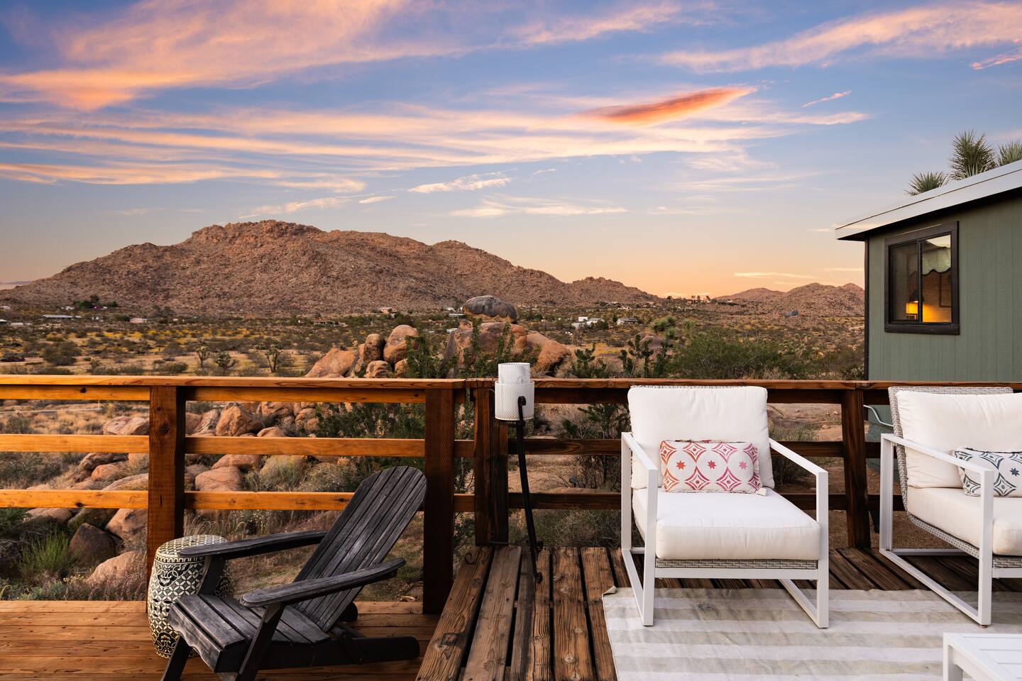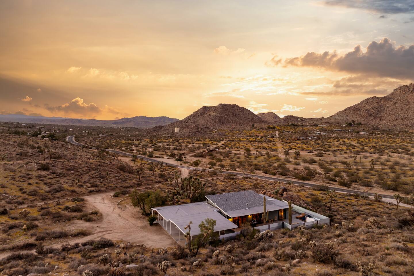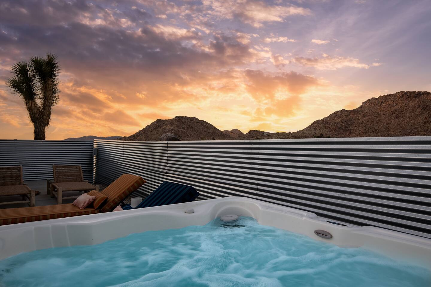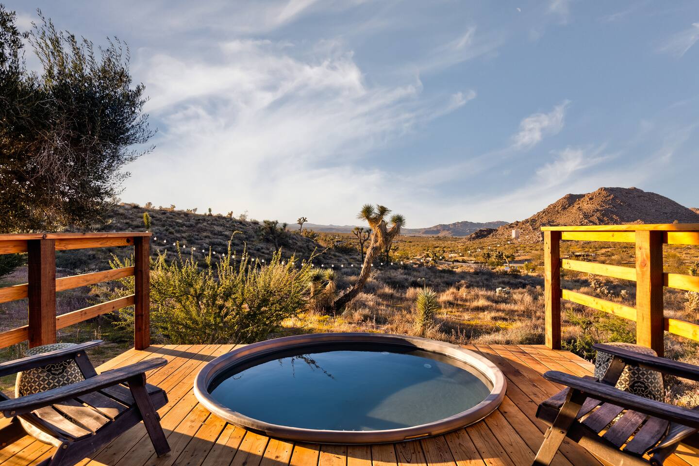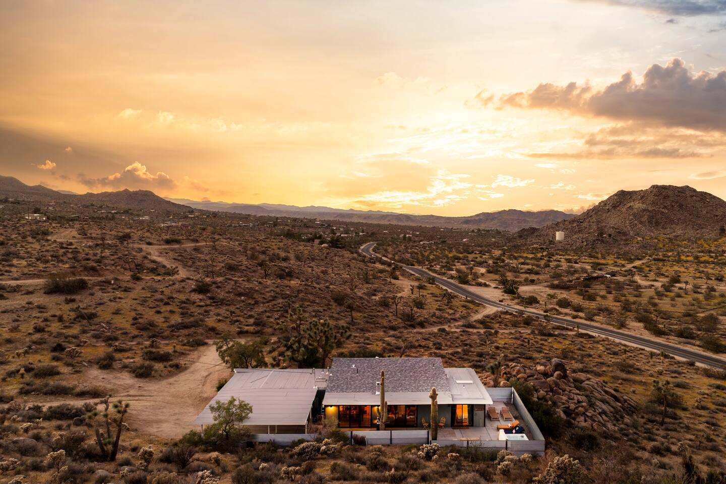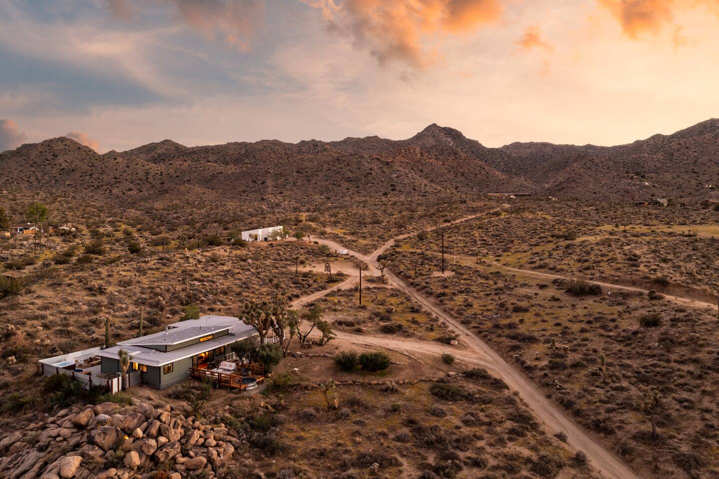 ☆☆ HIGHLIGHTS ☆☆ ✹ Designer property: recently redesigned by architect Duane Smith ✹ Total privacy in the heart of the desert: 2.5 private acres of solitude ✹ 3 spacious bedrooms: 2 kings + 1 queen ✹ 2 full bathrooms: essential toiletries provided ✹ Full kitchen w/ modern appliances ✹ Complimentary coffee bar ✹ Family-friendly: high chair, pack n’ play, children’s dinnerware, and more ✹ Spacious living area w/ flat-screen smart TV, record player, piano + more ✹ High-speed wifi + dedicated workspace ✹ Private hot tub + Cowboy Pool built into extensive front porch ✹ Panoramic views of the mountains + desert ✹ BBQ grill + outdoor dining space ✹ SoloStove firepit with 4 Adirondack chairs ✹ Lounge space in the sun + shade ✹ Dark skies: perfect for stargazing ✹ Pet-friendly ✹ A/C and heating throughout the home ✹ Washer + dryer ✹ Free parking: a covered area for 2 vehicles + additional parking in the driveway ✹ Local recommendations from the host ✹ Daily housekeeping available (subject to additional fees) ✹ Easy access to local attractions: minutes to the national park entrance Eager to Read More? Here Are A Few Kind Words From Our Previous Guests: “An absolute gem of a home located minutes away from the front gates a Joshua tree. It is rare to find an air bnb where you immediately feel “at home” upon walking inside. The design of this home has so much character and charm with an obvious attention to detail. The hosts are very accommodating and wanted us to have the best experience possible. We are fairly local and are already planning our trip back.” - Cris “This home was spotless, beautifully decorated, and exactly as described. Amazing views off the front porch of the surrounding mountains. The location was ideal—super close to the west gate of Joshua Tree park and also close to restaurants and shops in town, but still quiet and peaceful. The host was incredibly responsive and friendly, and provided excellent local recommendations. The beds were super comfortable, Wifi was great speed for a desert home, a fully stocked kitchen, and enclosed outdoor space felt very private and serene. It had two of the biggest cacti I’ve ever seen up close! We’d definitely stay here again and highly recommend it to anyone looking for a relaxing and hassle-free experience!” - Nick “This place was fantastic. I’ve been to Joshua tree over 10 times and this place was the perfect mix of value, proximity to the park, being secluded enough and amenities at the house. If your thinking about staying in Joshua tree don’t think twice about booking here” - Ciaran ★★ BEDROOMS ★★ Three sun-soaked bedrooms provide a bright and airy space to relax after a long day on the go. Each bedroom boasts a comfortable bed, extra pillows and blankets, and blackout curtains to help you enjoy a restful night even when you want to sleep in! Bedroom 1: King-sized bed, ensuite bathroom, direct access to front patio Bedroom 2: King-sized bed Bedroom 3: Queen-sized bed, direct access to outdoor patio ✔ Extra pillows + blankets ✔ A/C in each bedroom ✔ Blackout curtains ★★ BATHROOMS ★★ The primary bedroom has a charming bathroom, and one additional full bath is located off the main living area. Both bathrooms are sparkling clean and beautifully decorated to provide a relaxing experience. Don’t miss bathing in the clawfoot tub directly under a skylight with a view of the incredible starry sky! ✹Bathroom 1: Ensuite to the primary bedroom with a clawfoot bathtub, massive walk-in shower, and dual sinks ✹Bathroom 2: Full bathroom with a walk-in shower ✔ Essential toiletries provided (including shampoo, conditioner and body wash) ✔ Hair dryer ✔ Fresh towels ✔ Laundry room ★★ KITCHEN & DINING ★★ The modern kitchen is a chef’s dream with stainless steel appliances, spacious countertops, and an open concept that makes it easy to mingle with the whole group even while preparing meals. ✔ Fully stocked kitchen w/ modern appliances ✔ Complimentary coffee bar ✔ Basic cookware & dinnerware ✔ Oversized dining table w/ seating for 8 ✔ High chair for kids ★★ LIVING ROOM ★★ Featuring an expansive lounge space, this home offers plenty of opportunities to relax in between exploring nearby attractions. Sink into the comfy sofa and stream your favorite shows and movies on the flat-screen smart TV, or enjoy a digital detox as you read a book, spin some vinyl, or play a tune on the piano. ✔ Multiple lounge spaces w/ comfy sofas + chairs ✔ Dedicated workspace ✔ Decorative fireplace ✔ Piano + vinyl player ✔ Flat-screen smart TV ✔ Books + boardgames ★★ OUTDOOR SPACE ★★ The inside of the home is a design lover's dream, and the outdoor space is a sanctuary for nature lovers. Admire the starry night sky and Milky Way, unwind in the private hot tub, or soak up the sun from a lounger. Sweeping views surround the entire property, making this private desert retreat the perfect destination. ✔ Private hot tub + cowboy pool ✔ Sun loungers ✔ BBQ grill + outdoor dining ✔ Stunning views of the desert + mountains ✔ Dark skies: perfect for stargazing ★★ ACTIVITIES/ATTRACTIONS ★★ Once you’re ready to get out and explore the high desert, you’ll find nearby attractions like the national park and downtown Joshua Tree just a stone’s throw away. Here are some of our favorite activities and attractions nearby: Outdoor & Nature Activities Explore iconic desert landscapes, scenic hikes, and wildlife viewing spots: ✔ Joshua Tree National Park West Entrance – 1.9 miles ✔ Barker Dam Trail – 6 miles ✔ Hidden Valley – 11.2 miles Art & Culture Discover Joshua Tree's vibrant art scene and unique installations: ✔ Joshua Tree Art Gallery (JTAG) – 3.4 miles ✔ Noah Purifoy Outdoor Desert Art Museum – 8.8 miles ✔ Art Queen & World Famous Crochet Museum – 3.2 miles ✔ La Matadora Gallery – 3.3 