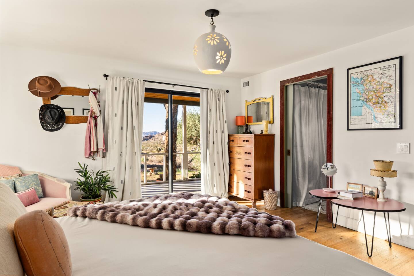 Drive a couple of hours east of Los Angeles, and you’re in a different world. Nowhere is that more apparent than Joshua Tree with its many artist residences, rugged rock formations, and stark desert landscapes. Named after the twisted, bristled Joshua Tree, a stay in this little Mojave desert community is synonymous with art exhibitions, beautiful night skies, hikes, delicious food, and plenty of hours lounging about in aesthetically pleasing surroundings. The Ranch at Quail's End is located about 5 minutes from downtown Joshua Tree and another 5 minutes from the West entrance of the national park. Surrounded by a rocky, mountainous landscape that we like to call "luxury alien planet". Peaceful, beautiful and convenient.